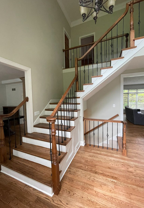 Handrails are important additions to any staircase. They give you something to hold on to while going down the steps. They can be simple or extravagant. Handrails serve a very useful purpose in staircases, and they often become a design element as well. Handrails should be sturdy and secure, and they should be in a form that is aesthetically appealing. At DJ Hardwood Flooring, we have installed and refurbished handrails in a wide range of styles, for clients in Indianapolis and the surrounding areas. Whether you want to replace old worn-out handrails or install brand new ones, we have the experience and skills to do the Handrails Refinishing and Installation job properly.